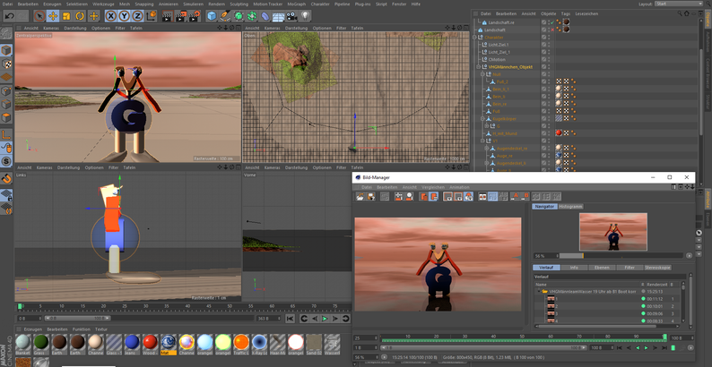 ... und seine Erstellung in Cinema 4D - die Renderzeit pro Bild betrug - bei 16 gleichzeitig werkelnden Prozessoren! - aufgrund der Spiegelungen und Wasserbewegung durchschnittlich acht Minuten (!), nach 15 Stunden waren die vier Sekunden Film fertig!